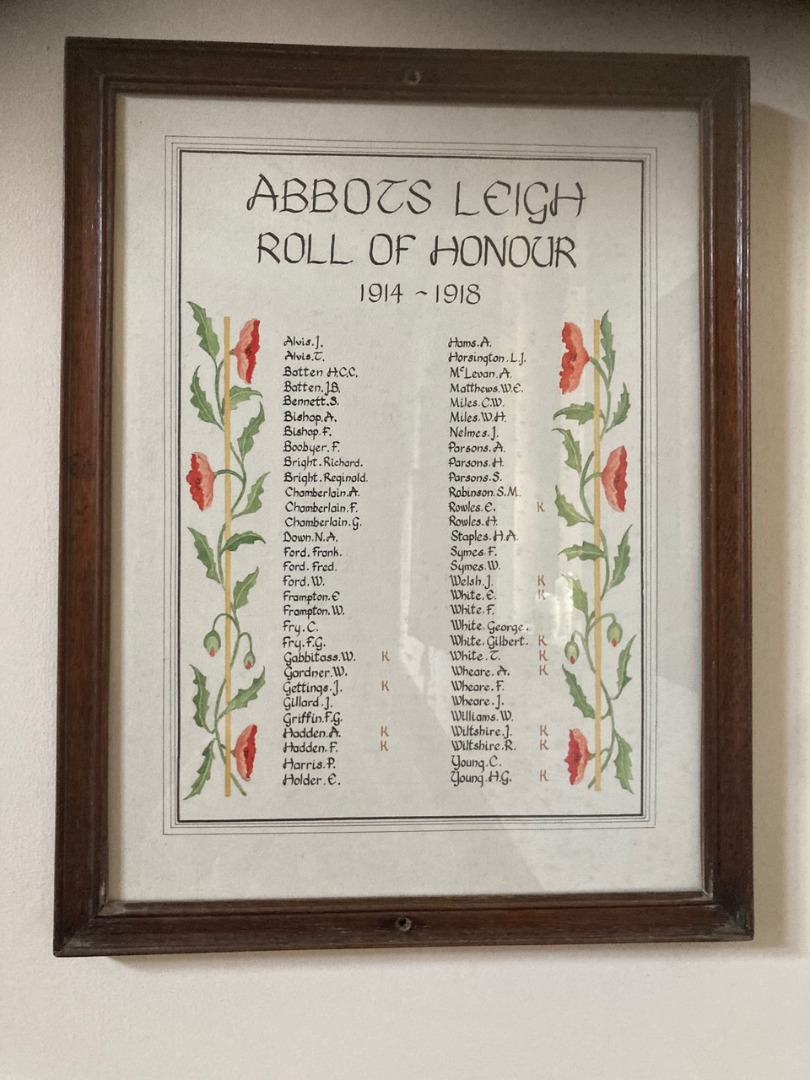 During the 1914-1918 war men from the village enlisted, not all returned. The Church has a Roll of Honour for WW1 The churchyard cross was restored as a war memorial in June 1921; it was unveiled by Colonel H. Cary BATTEN OBE, and dedicated by the Lord Bishop of Bristol. Survivors were welcomed home to a peel of church bells.